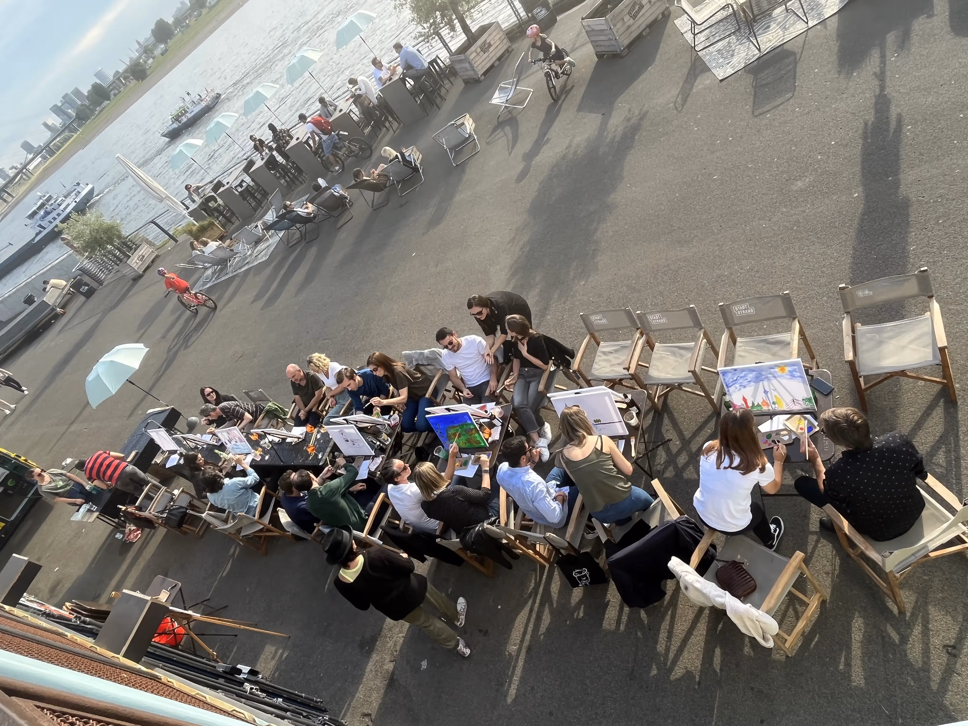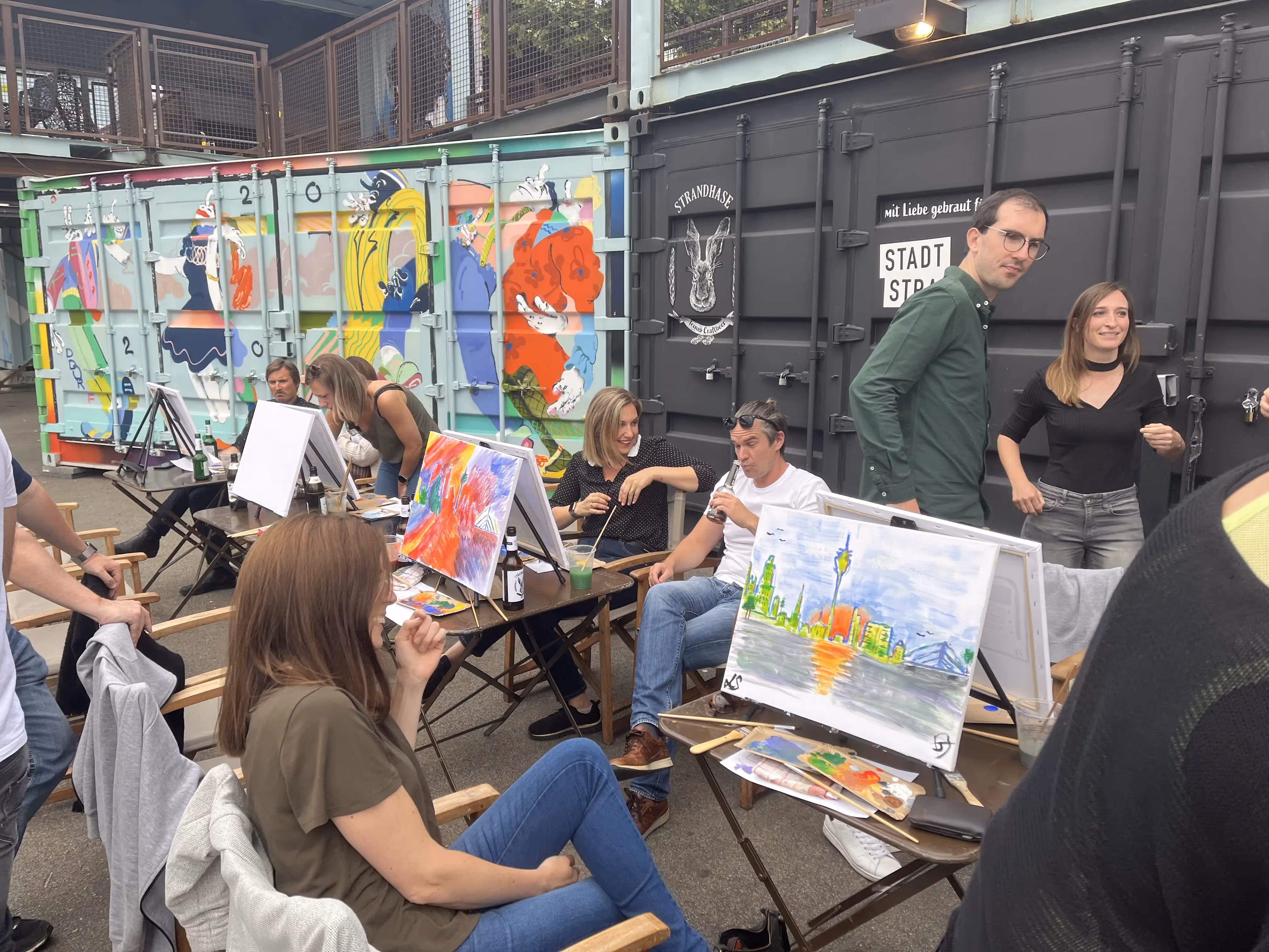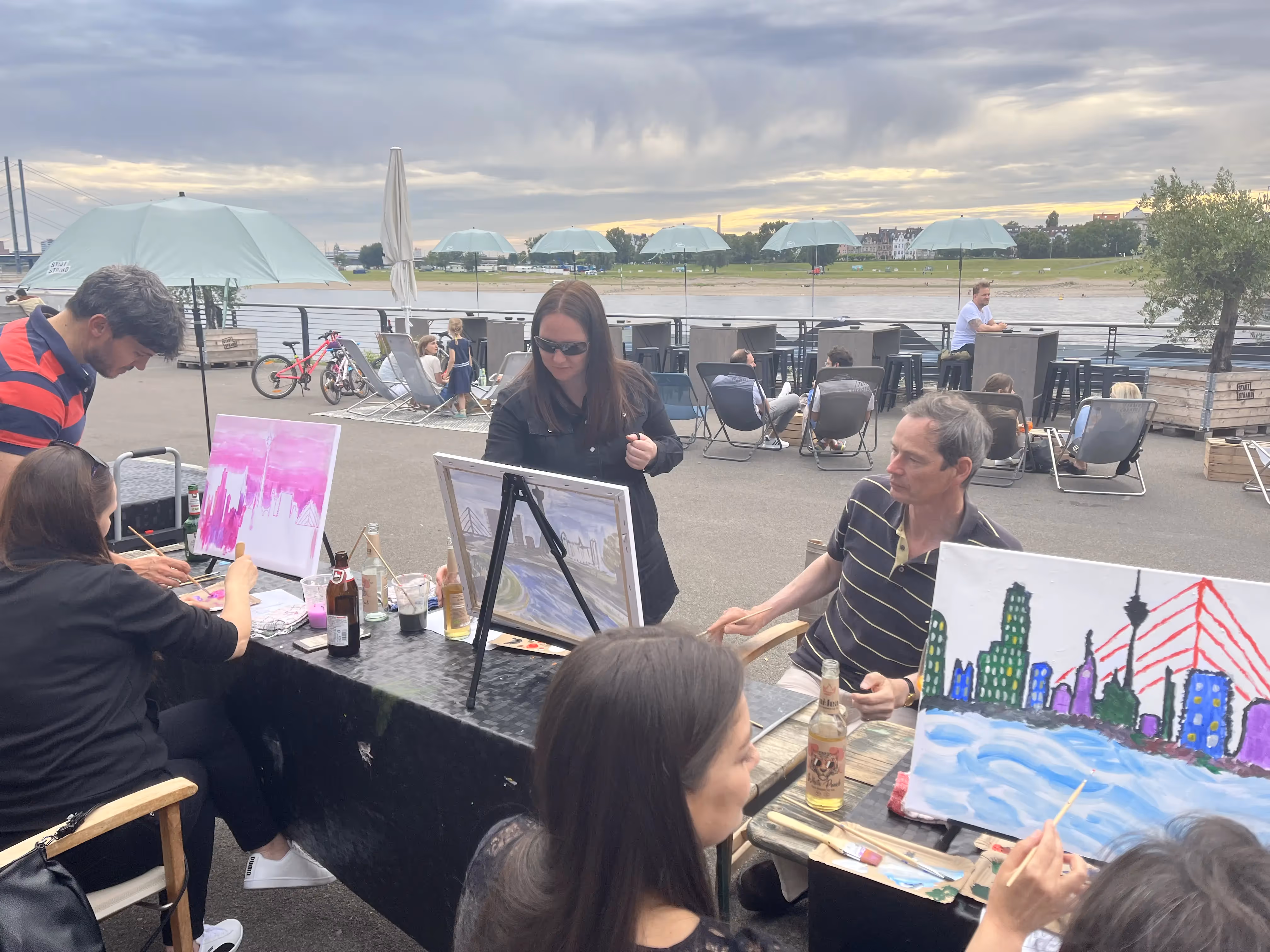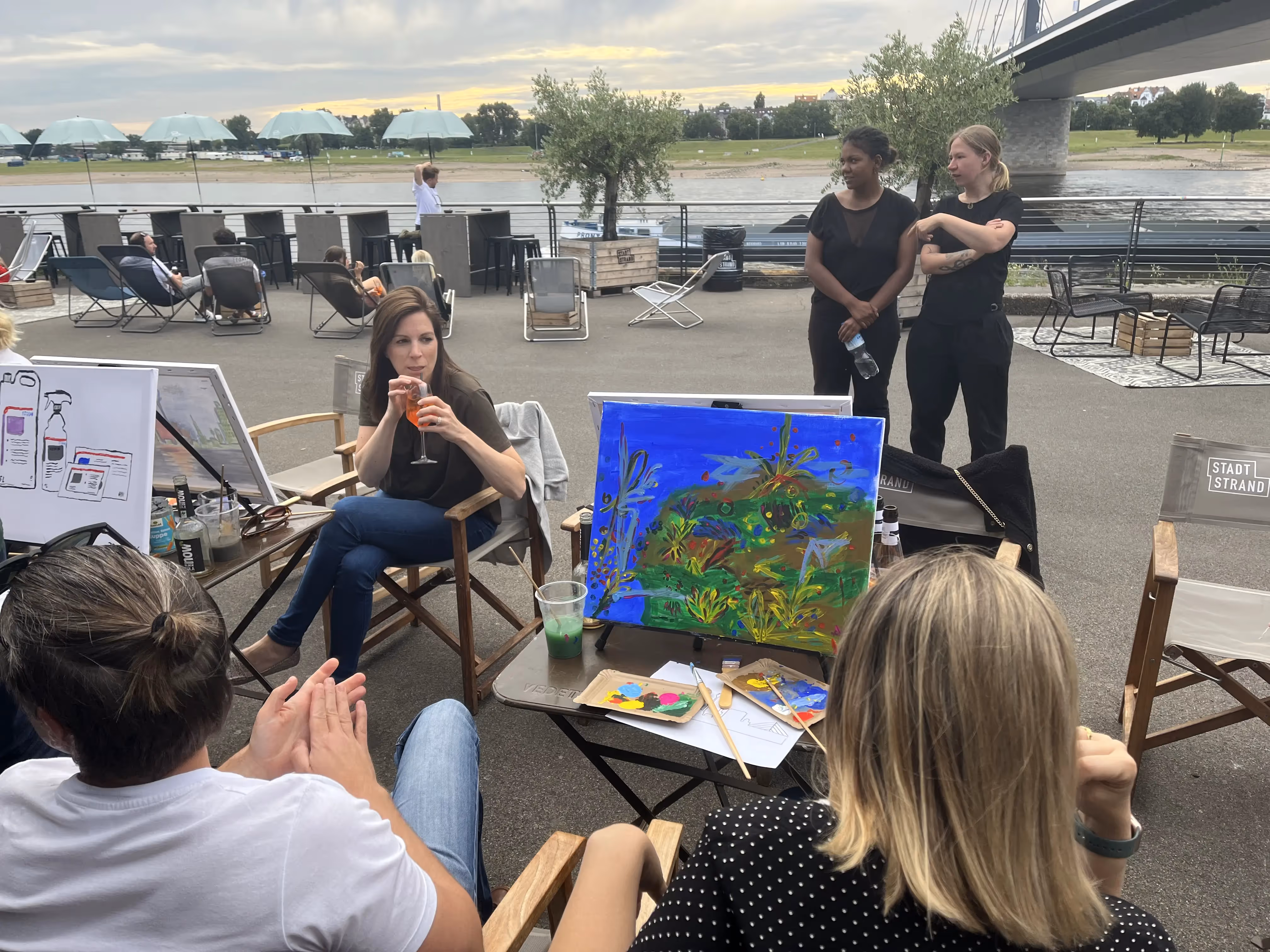 In der abendlichen Sommersonne habt ihr die Möglichkeit, beim leckeren Feierabendbierchen und Cocktail-Kreationen den Pinsel kunstvoll schwingen zu lernen.