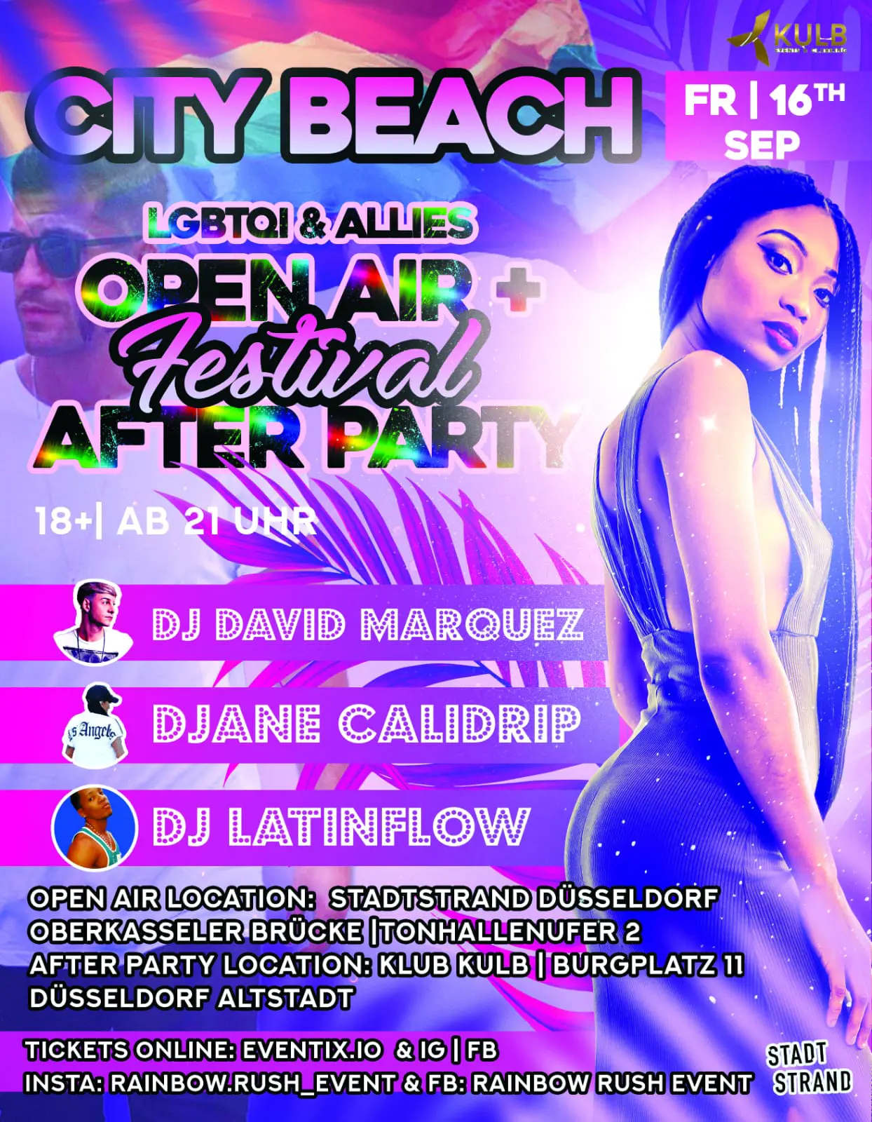 RAINBOW.RUSH_EVENTS & STADTSTRAND DÜSSELDORF präsentieren die erste Ausgabe der pre-party zum CITY BEACH PRIDE FESTIVAL.