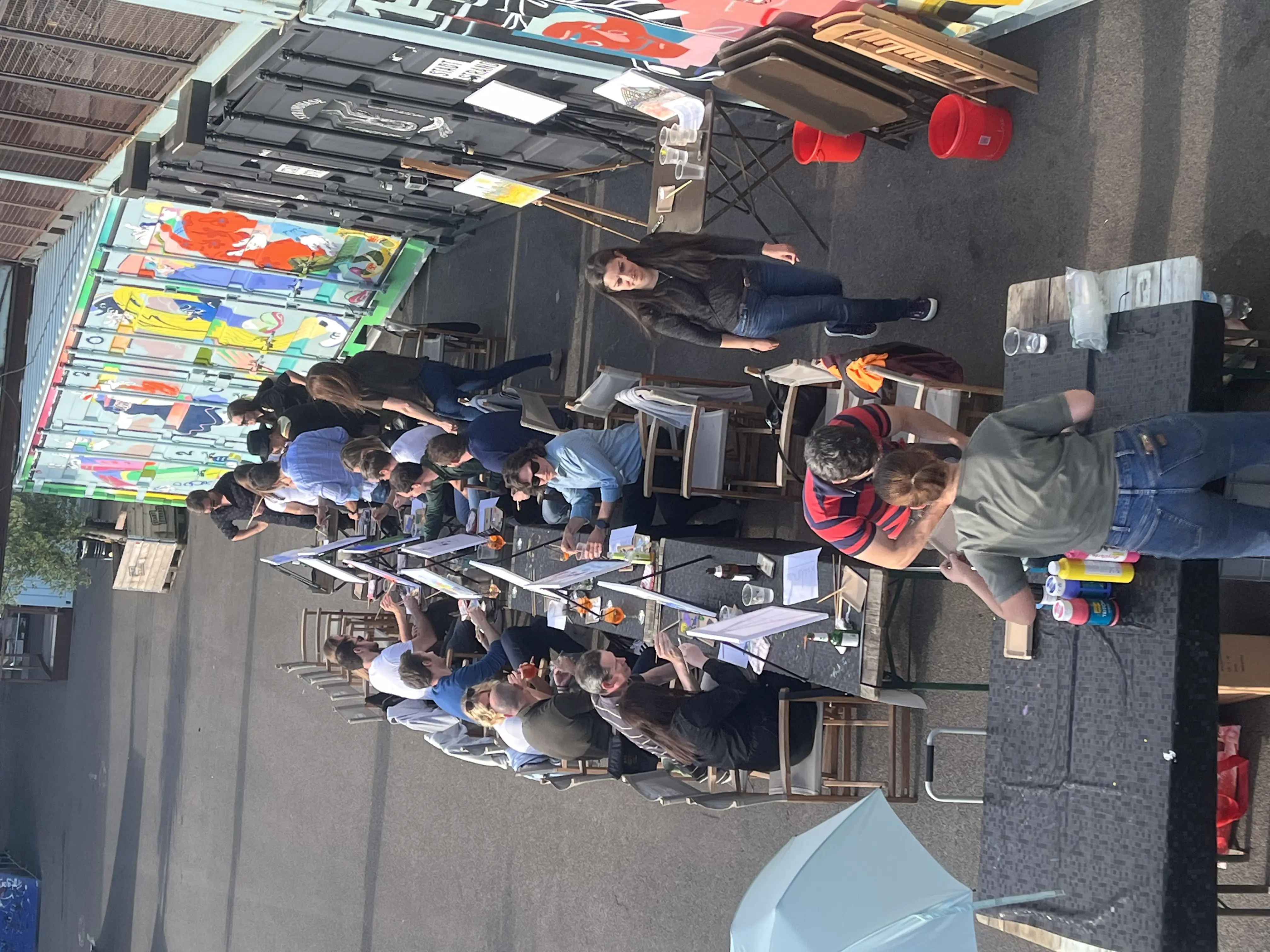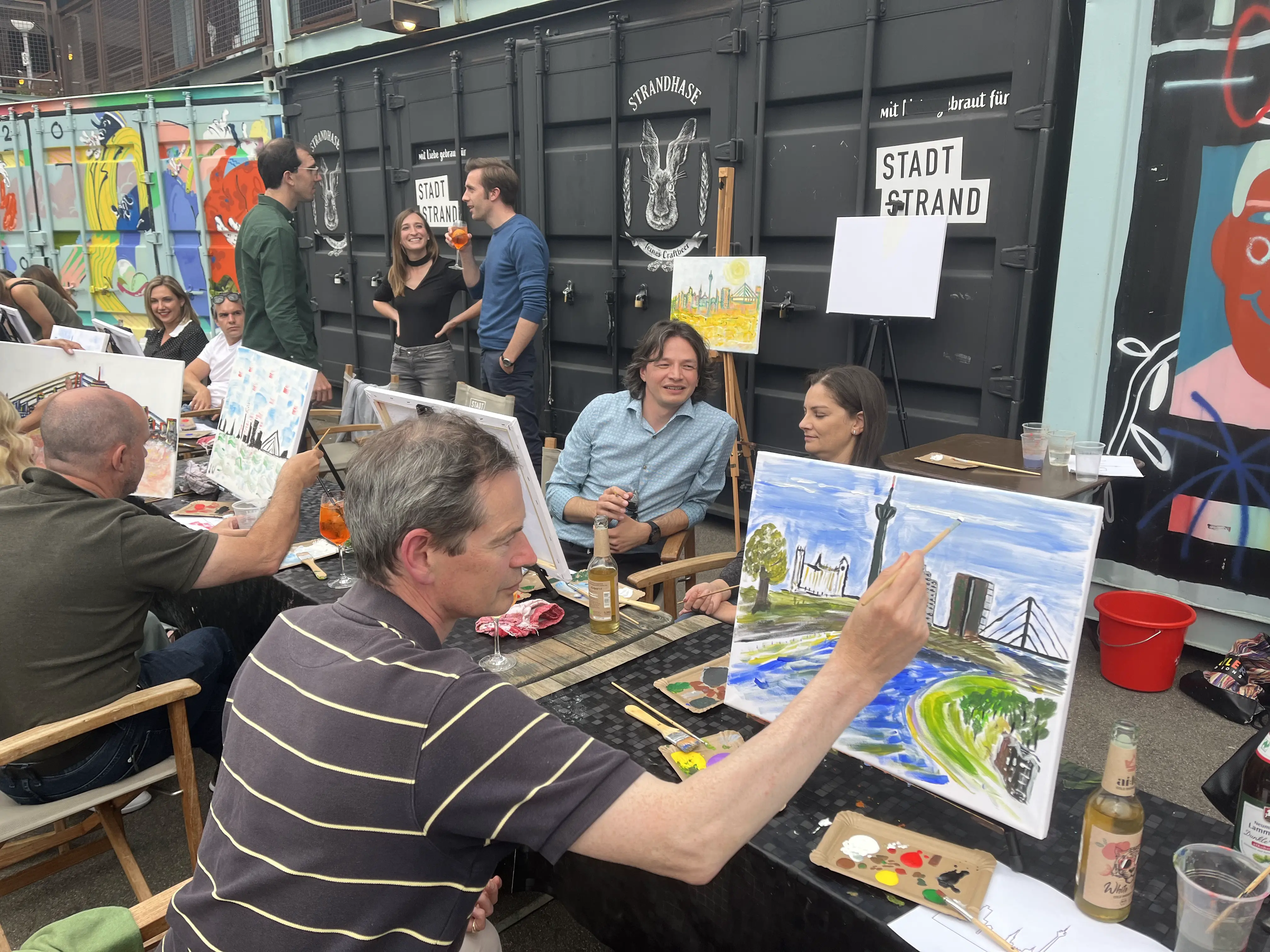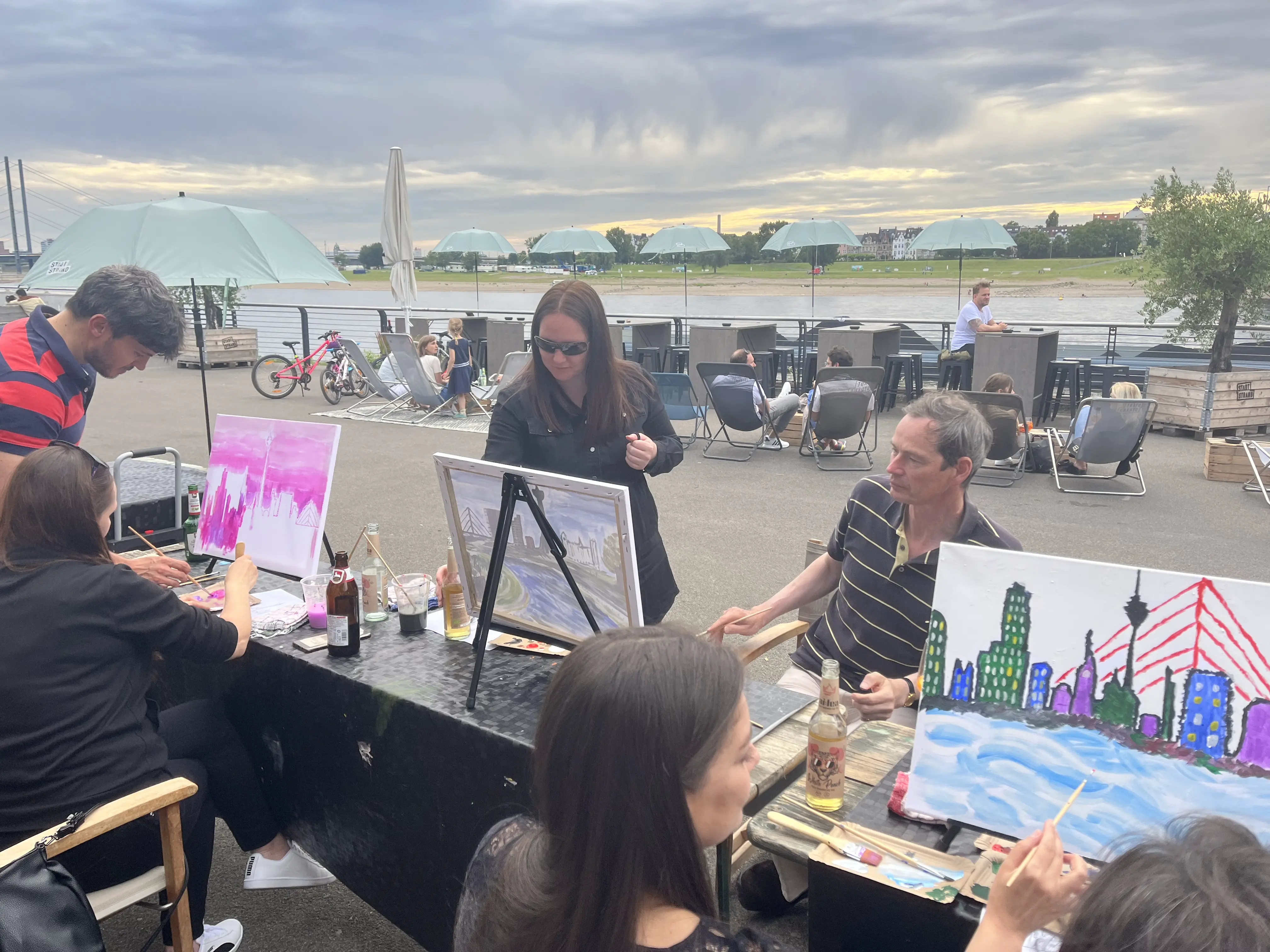 In der abendlichen Sommersonne habt ihr die Möglichkeit, beim leckeren Feierabendbierchen und Cocktail-Kreationen den Pinsel kunstvoll schwingen zu lernen.